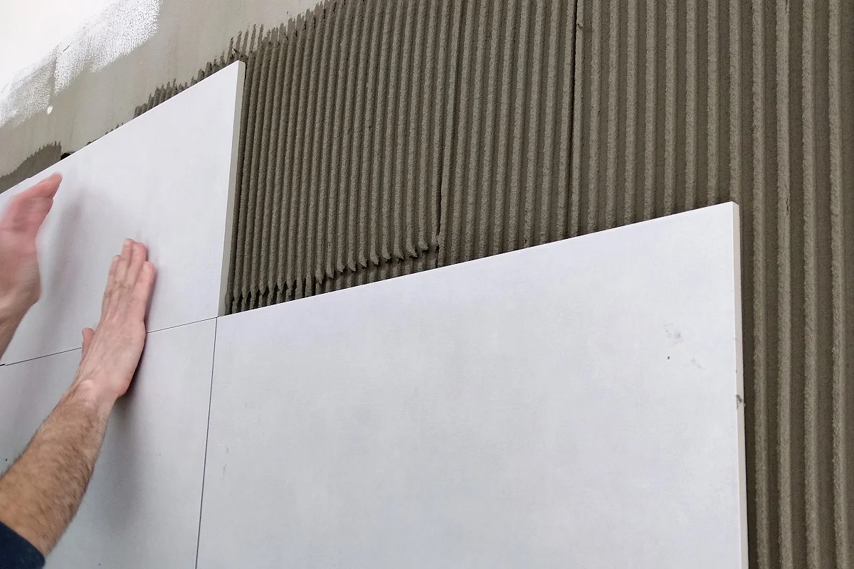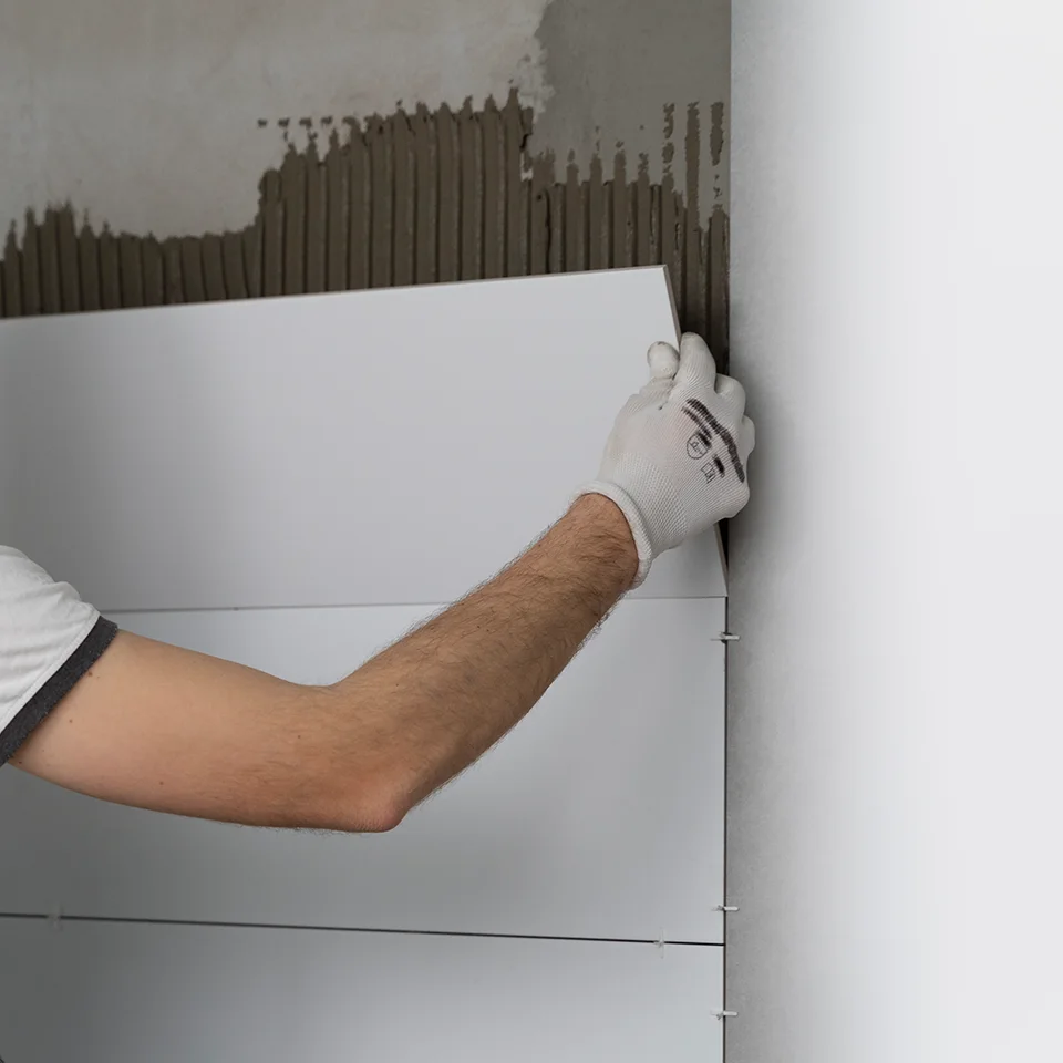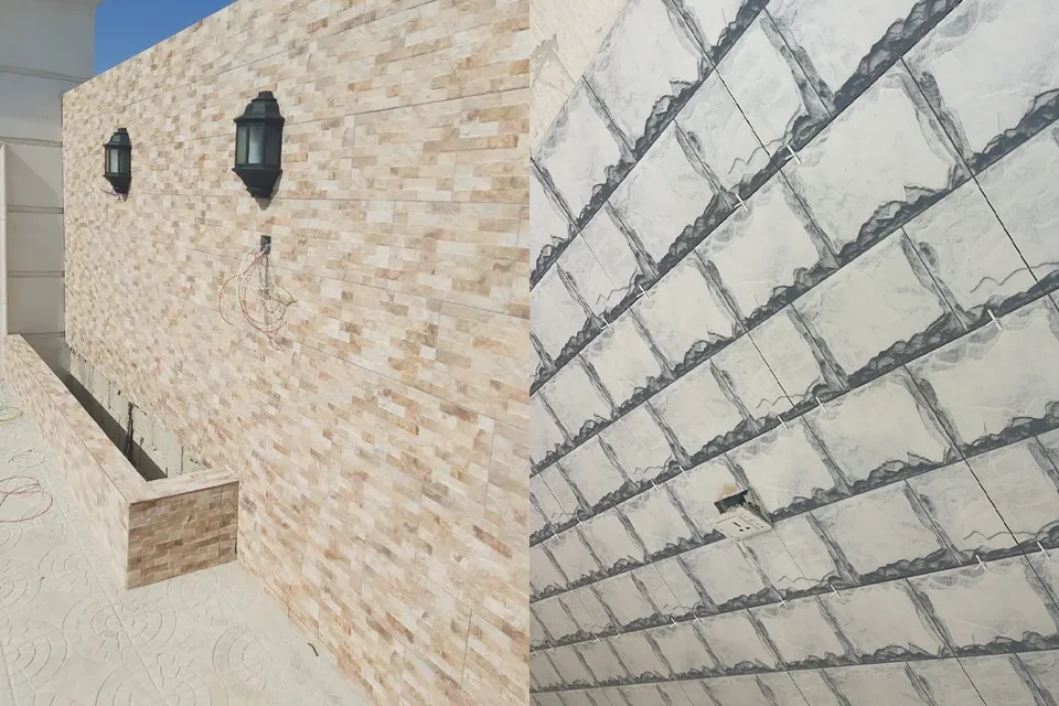 التركيز على القطع الكبيرة (Large Format Tiles)، والقص الدقيق بالوترجيت، مع خبرة في تركيب بلاط 60×120 أو 80×80، لضمان فواصل أقل.