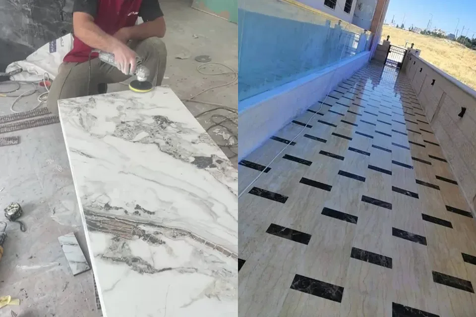 بالصور والفيديو ، أعمال أرضيات وبلاط بإتقان يفوق توقعك