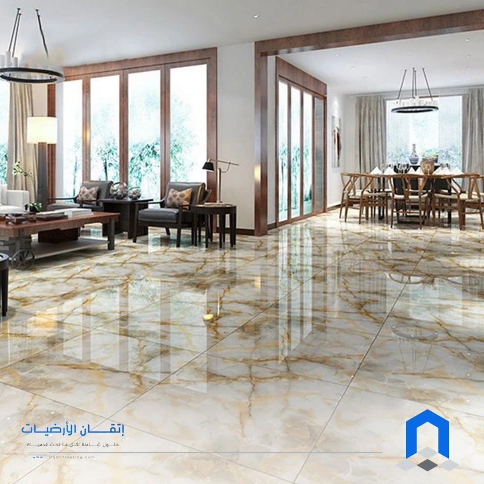 | سيراميك محاكي للرخام | – مظهر فاخر وبأسعار معقولة. – خيارات تصميمية مبهرة. – أسهل في الصيانة من الرخام الطبيعي. | – قد تختلف القطعات في الدرجة اللونية. – يتطلب تخطيطاً دقيقاً عند التركيب. |